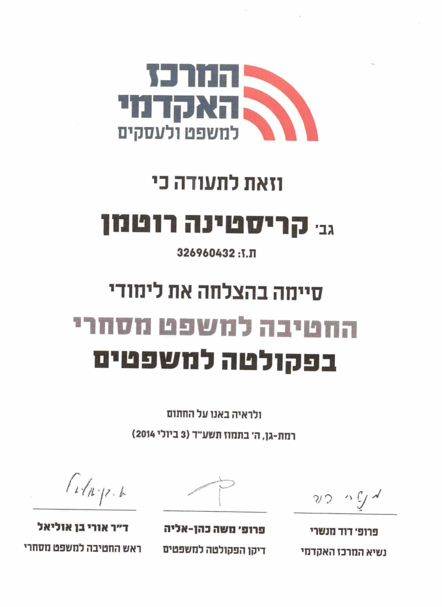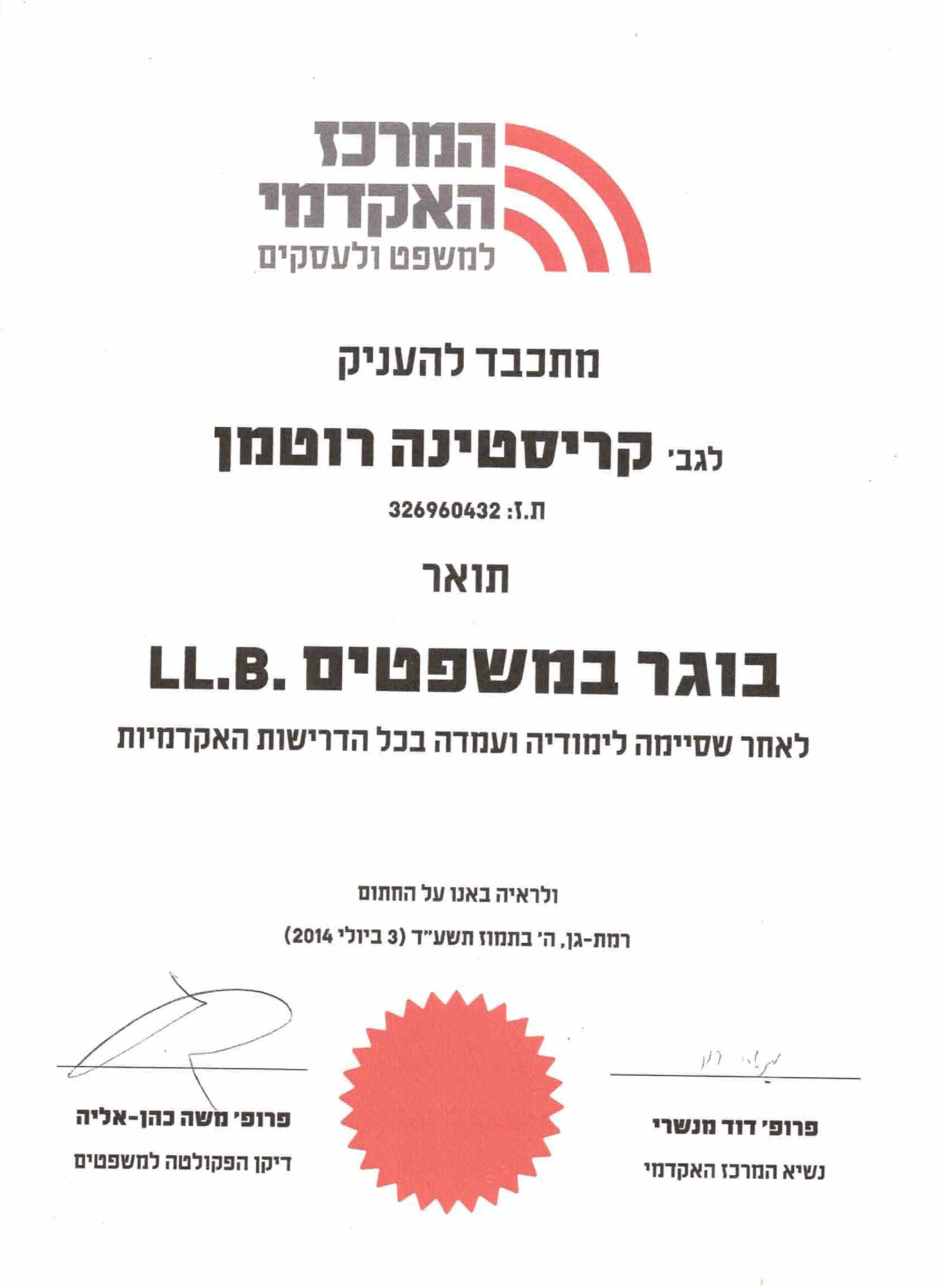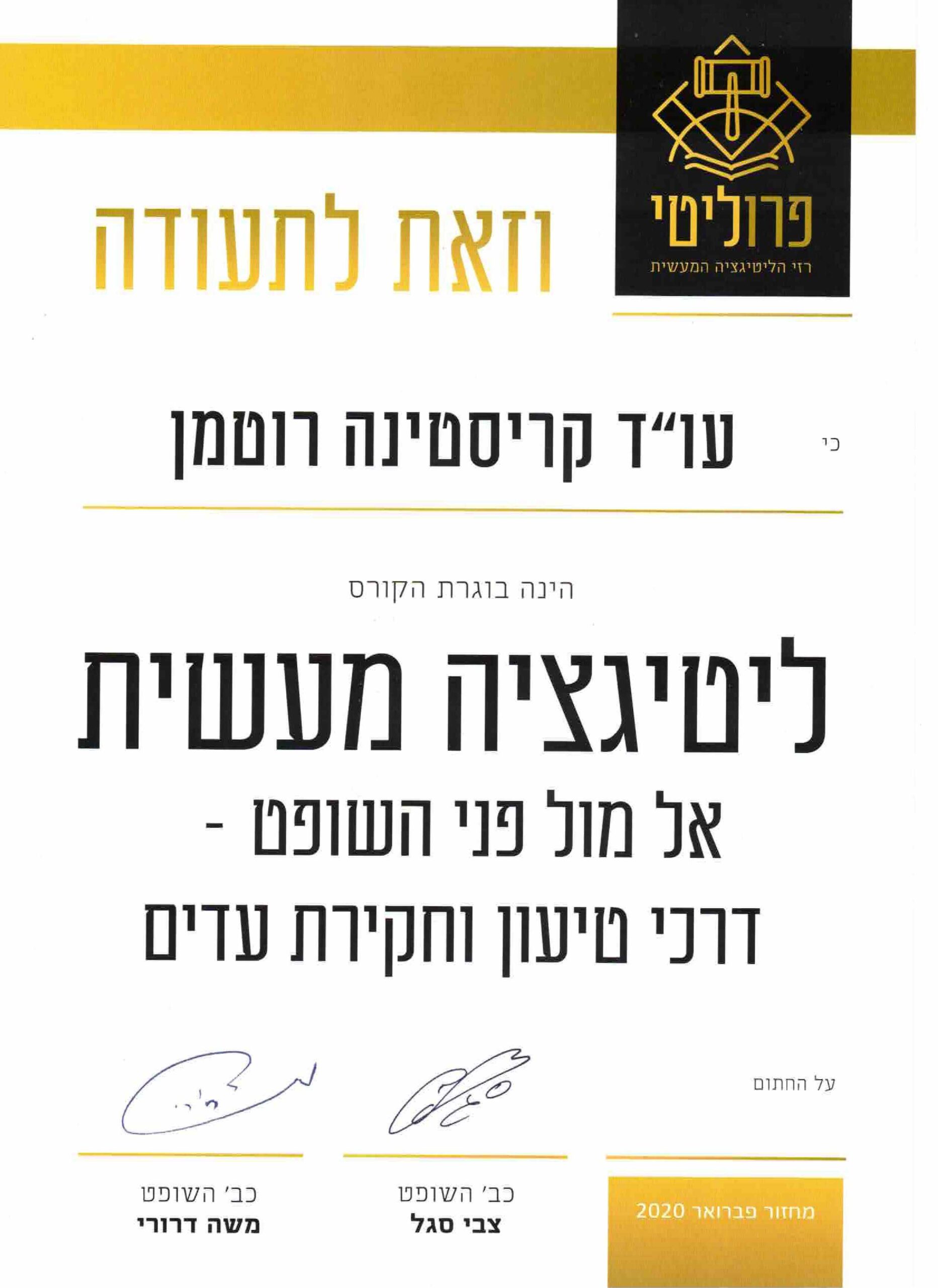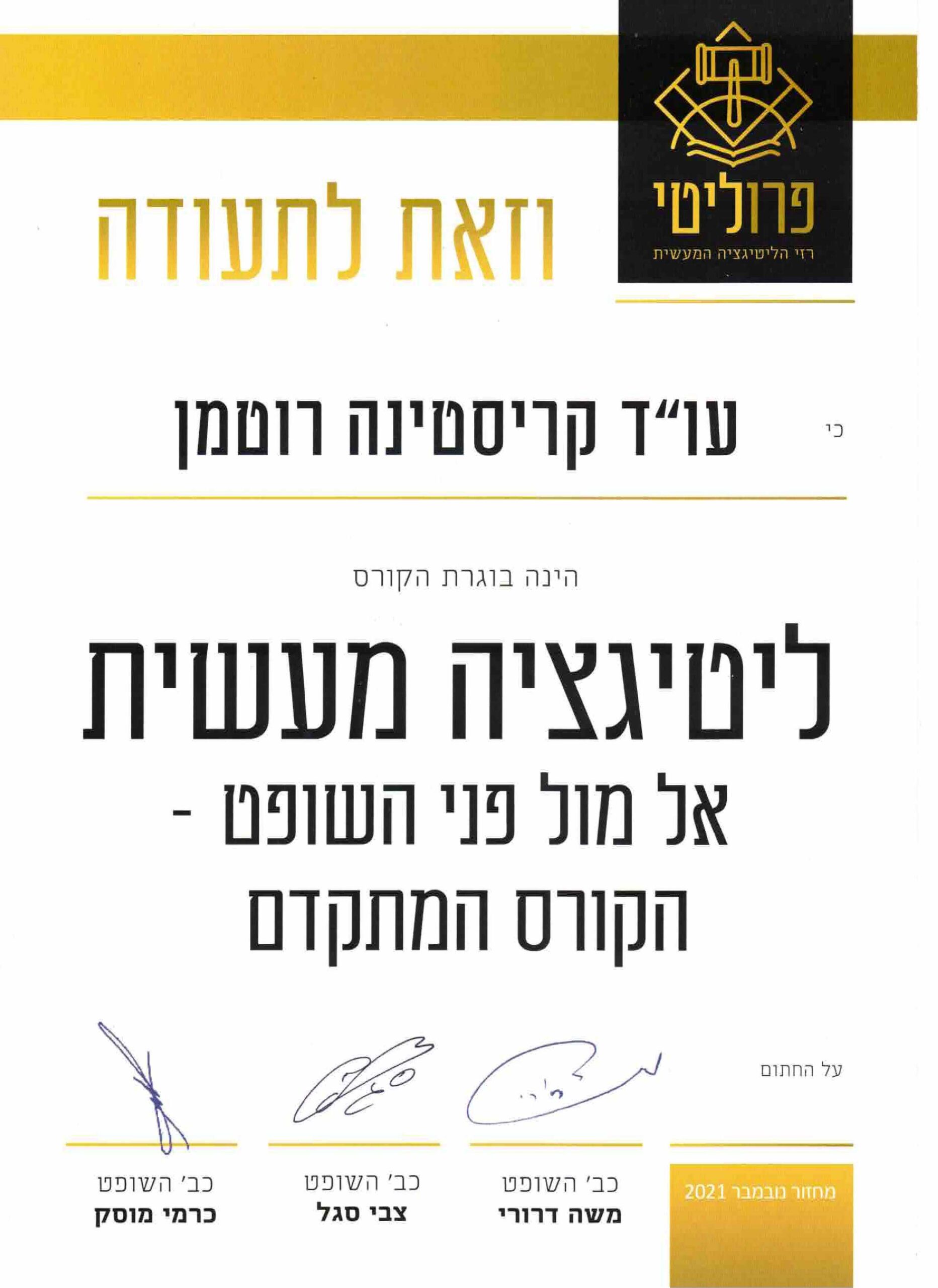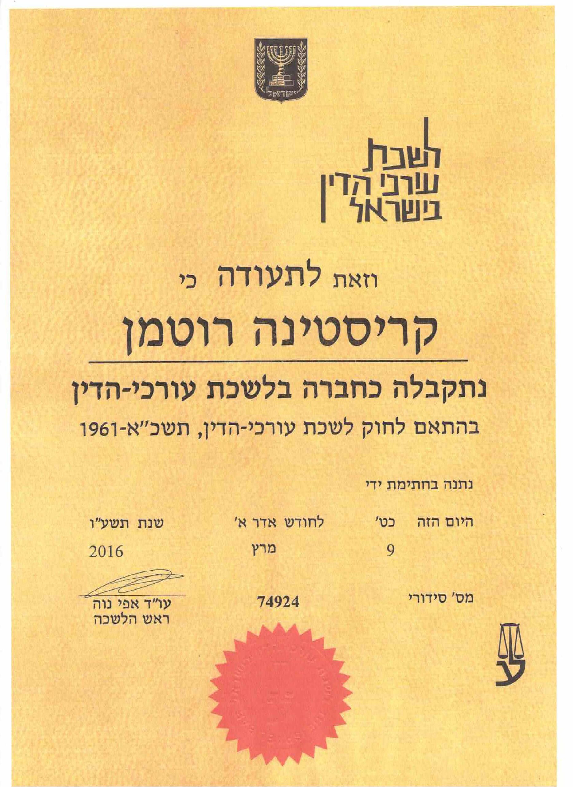Кристина Рутман — русскоязычный адвокат в Израиле, юридическая карьера которой — это продолжение семейной династии юристов в стране исхода, обогащенная знаниями и опытом израильского права.